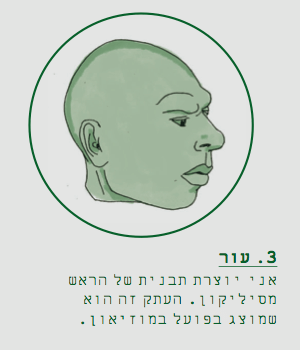 בהמשך, אני מכינה תבנית מסיליקון של המבנה כולו – והעתק זה הוא מה שבפועל יופיע בתצוגה – ואני צובעת אותה בצבעי עור. אני מוסיפה שיער אמיתי, וגם שיניים משרף ועיני זכוכית. חלק מההחלטות האסתטיות הן שלי, ולא של המדענים. עם ניאנדרטלים, אני יכולה לעבוד בחופשיות כי כבר שחזרתי כל כך הרבה מהם. עבור אדם אחד, גילחתי את שיער הפנים שלו עם להב אבן, כל שערה בנפרד, והענקתי לו פירסינג באוזניים מקונכיות.
